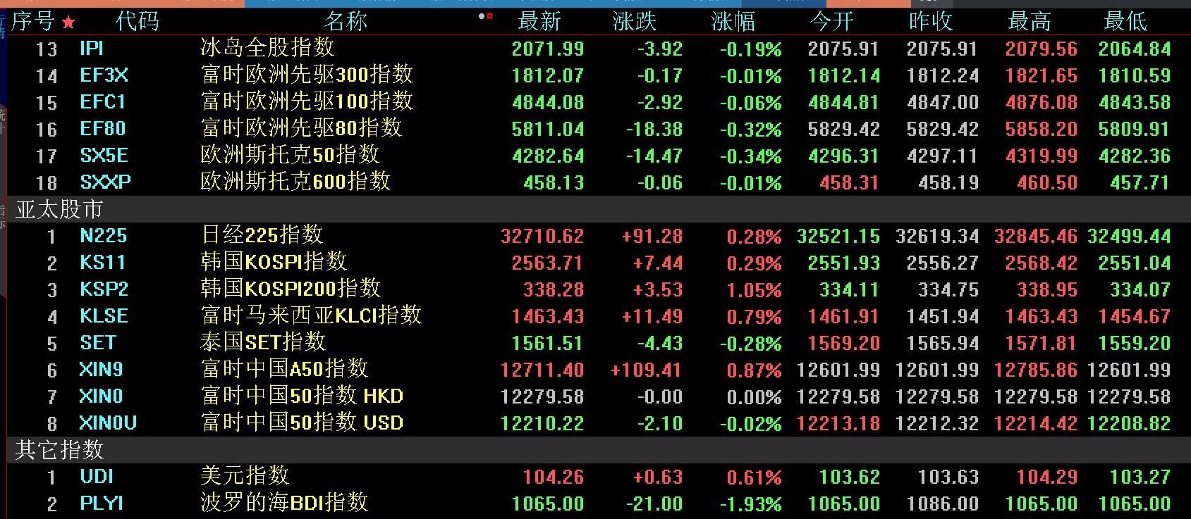 周五,亞太主要股市漲跌互現(xiàn)。韓國綜合指數(shù)漲0.29%,報(bào)2563.71點(diǎn),周漲1.77%;日經(jīng)225指數(shù)漲0.28%,報(bào)32710.62點(diǎn),周漲3.44%;澳洲標(biāo)普200指數(shù)跌0.37%,報(bào)7278.3點(diǎn),周漲2.29%;新西蘭NZX50指數(shù)跌0.22%,報(bào)11528.73點(diǎn),周漲0.53%。