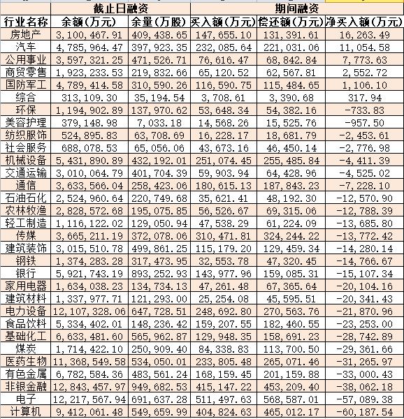 表:9月1日申萬一級行業(yè)兩融交易情況: