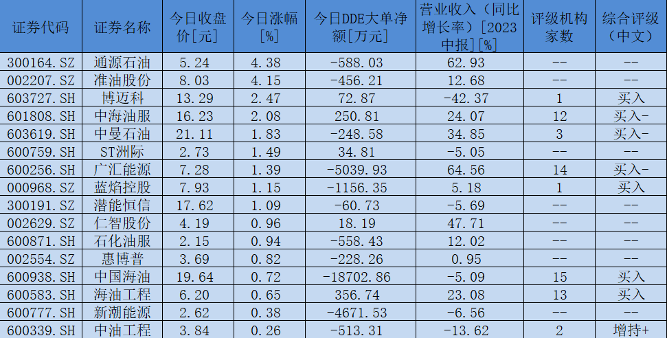 表:9月6日,油氣開采及服務板塊實現(xiàn)上漲個股一覽