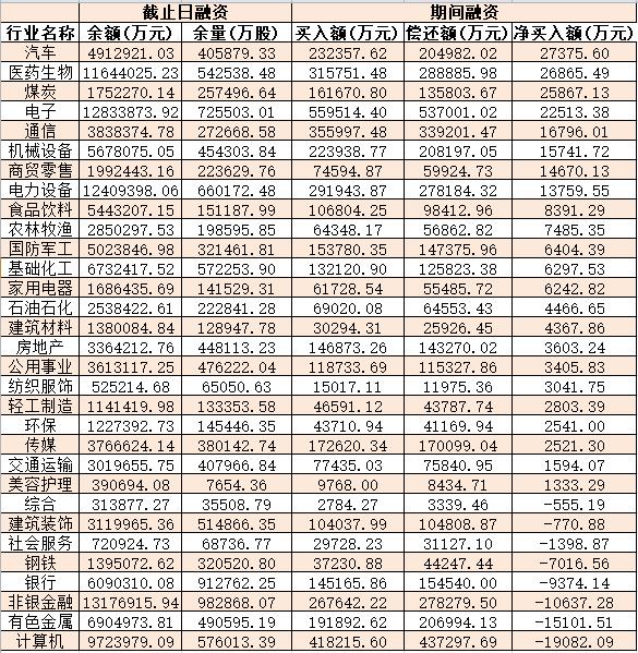 表:9月14日申萬(wàn)一級(jí)行業(yè)兩融交易情況: