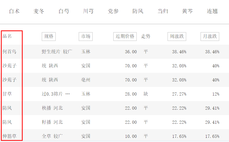 此外,《證券日報》記者從中藥材天地網(wǎng)看到,近期,不少中藥材價格持續(xù)上漲,何首烏、沙苑子等價格周漲幅均超32%。