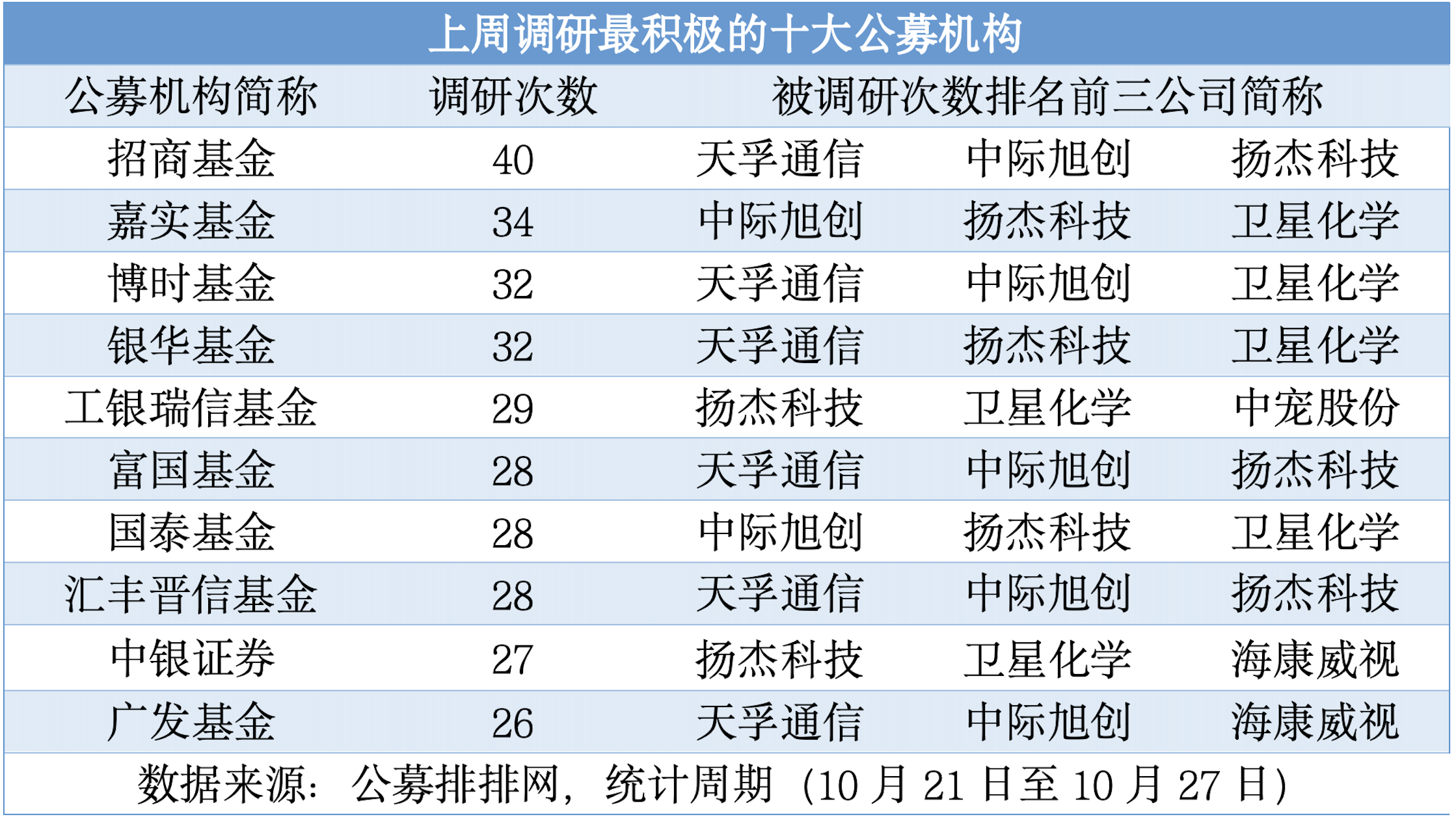 (上周調(diào)研最積極的十大公募機(jī)構(gòu))