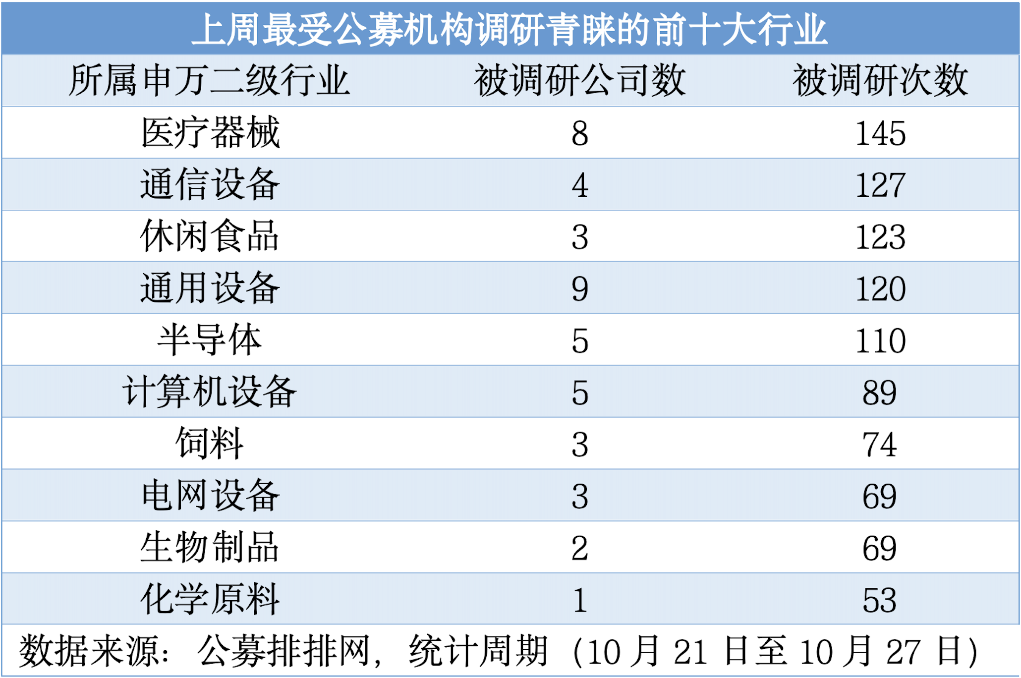 (上周最受公募機(jī)構(gòu)調(diào)研青睞的前十大行業(yè))