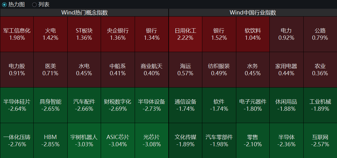 5月9日開盤后,A股三大指數(shù)震蕩調(diào)整。截至午間收盤,上證指數(shù)跌0.26%,深證成指跌0.84%,創(chuàng)業(yè)板指跌0.99%。板塊上來看,銀行板塊逆勢走高,火電、紡織服裝、日用化工等板塊表現(xiàn)活躍。