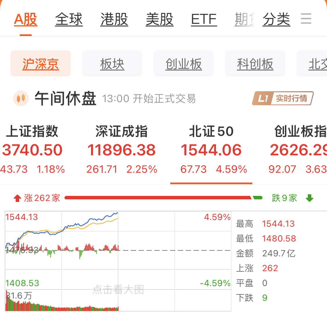 8月18日早盤時間,A股延續(xù)大漲態(tài)勢。截至上午收盤,上證指數站上3740.50點,漲1.18%,創(chuàng)近十年新高,創(chuàng)業(yè)板指拉升漲3.63%,深成指漲2.25%,全市上漲個股4497只。早盤時間,兩市成交總額17221億元,較前一日同期放量4114億元。