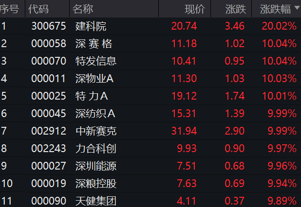 深圳本地股批量漲停!