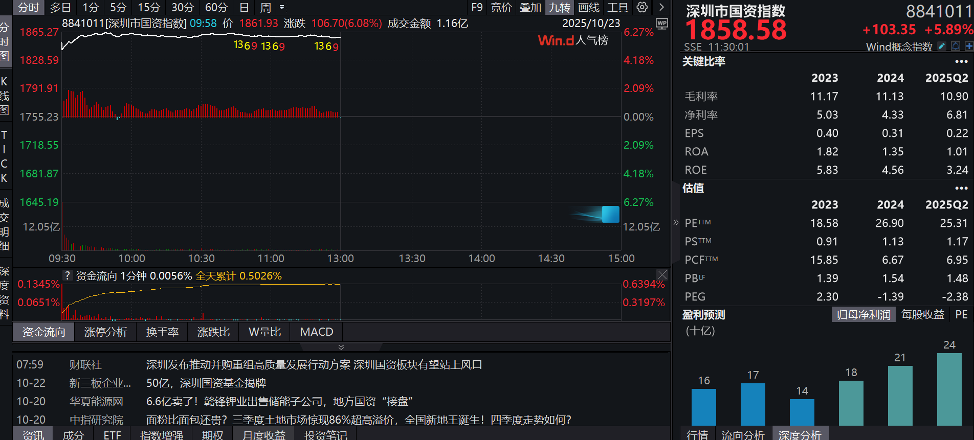 10月23日,深圳市國(guó)資指數(shù)開(kāi)盤跳空高開(kāi),截至午間收盤,該指數(shù)上漲5.89%。