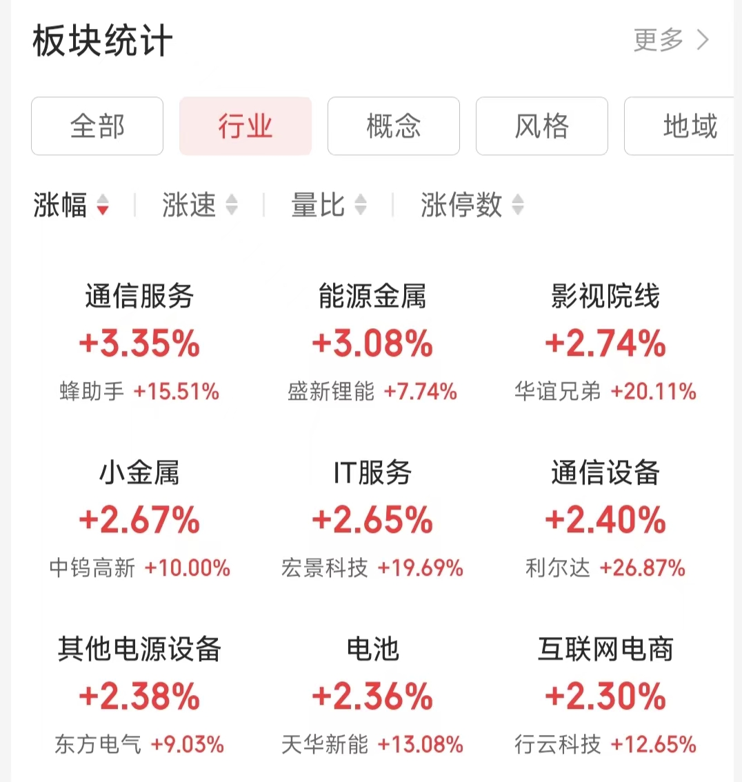 行業(yè)熱點方面,iFinD數(shù)據(jù)顯示,截至4月16日上午收盤,在同花順A股二級行業(yè)中,通信服務(wù)行業(yè)漲幅達(dá)到3.35%,位居榜首。能源金屬(漲幅3.08%)、影視院線(漲幅2.74%)、小金屬(漲幅2.67%)等行業(yè)緊隨其后。此外,IT服務(wù)、通信設(shè)備、電池等行業(yè)也表現(xiàn)活躍,漲幅均超過2%。
