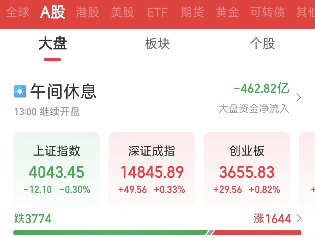 周五(4月17日),今日早盤市場展現(xiàn)較強(qiáng)韌性,雖滬指略有休整,但深證成指、創(chuàng)業(yè)板指延續(xù)反彈勢頭,市場結(jié)構(gòu)性機(jī)會依然豐富。截至上午收盤,上證指數(shù)下跌0.3%,報4043.45點(diǎn);深證成指上漲0.33%,報14845.89點(diǎn);創(chuàng)業(yè)板指上漲0.82%,報3655.83點(diǎn)。滬深兩市合計成交額15805.19億元,市場交投活躍。總體來看,個股跌多漲少,共有1644只個股實(shí)現(xiàn)上漲。