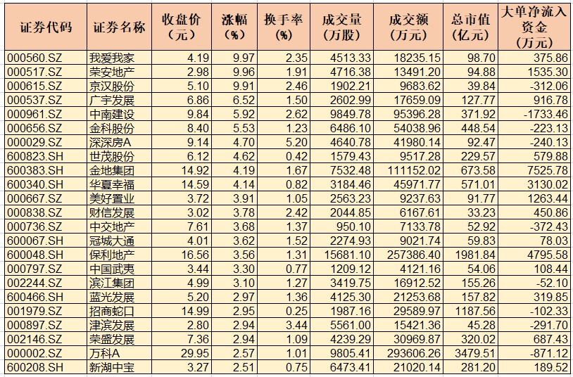 表:11月17日房地產(chǎn)行業(yè)漲幅居前個(gè)股一覽