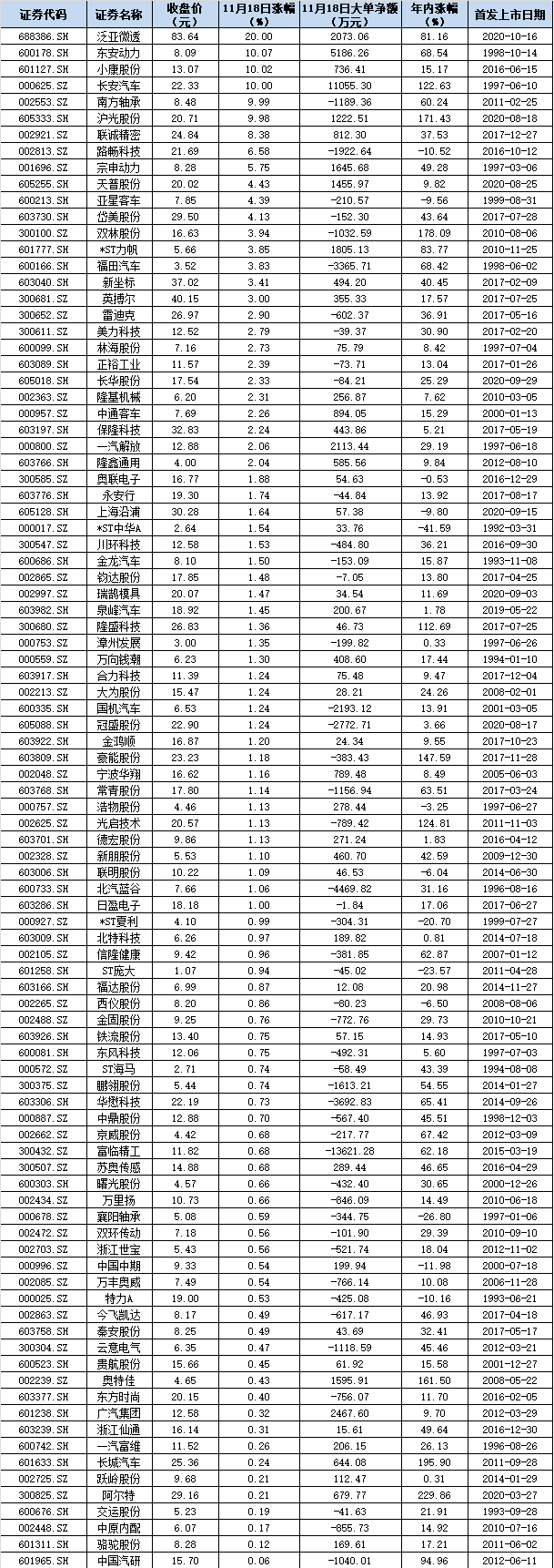 表:11月18日實(shí)現(xiàn)上漲的汽車股一覽