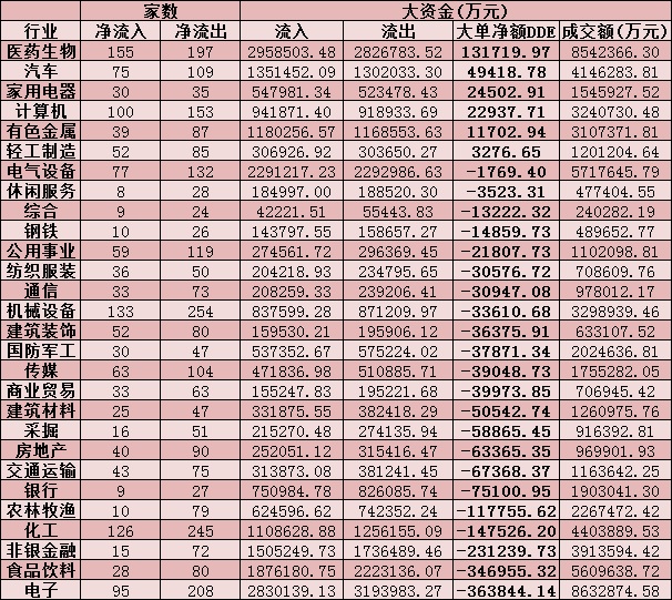 二、周二(12月15日)申萬一級行業(yè)大單資金流向