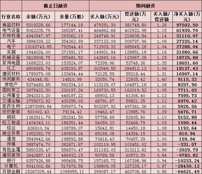 六、截至12月14日申萬級一級行業(yè)兩融交易情況