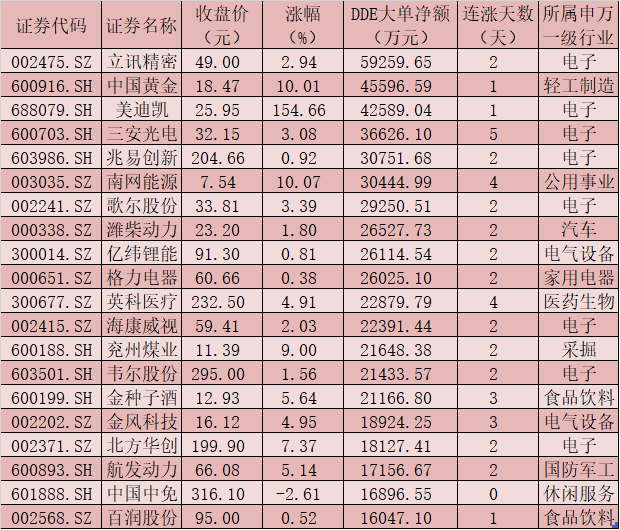 一、周二(3月2日)DDE大單資金凈買入TOP20