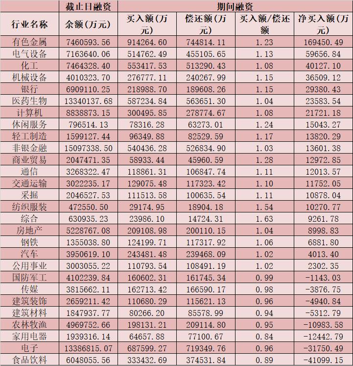 六、截至3月1日申萬級一級行業(yè)兩融交易情況