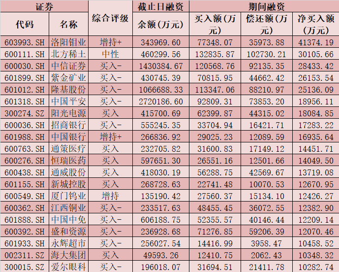 七、3月1日融資凈買入股TOP20