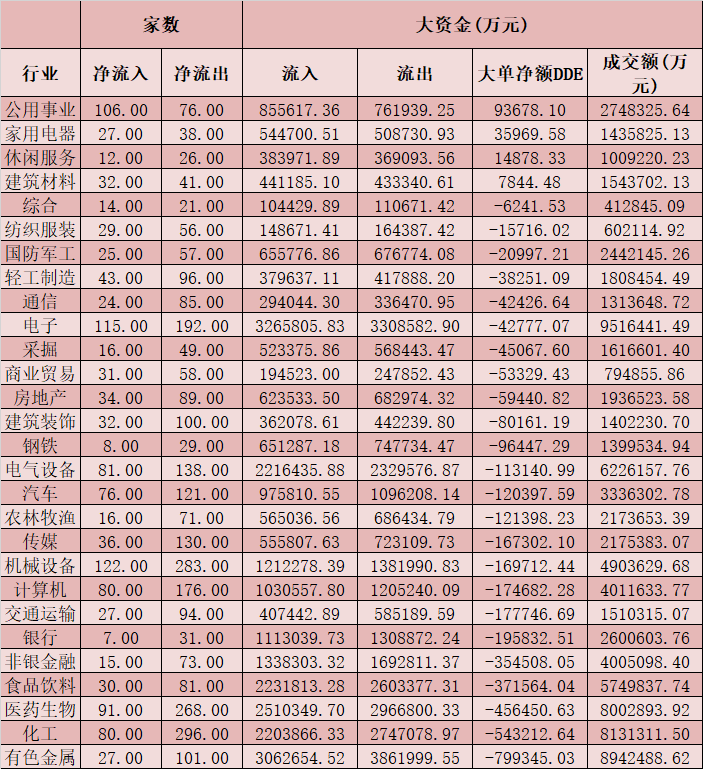 二、周二(3月2日)申萬一級行業(yè)大單資金流向