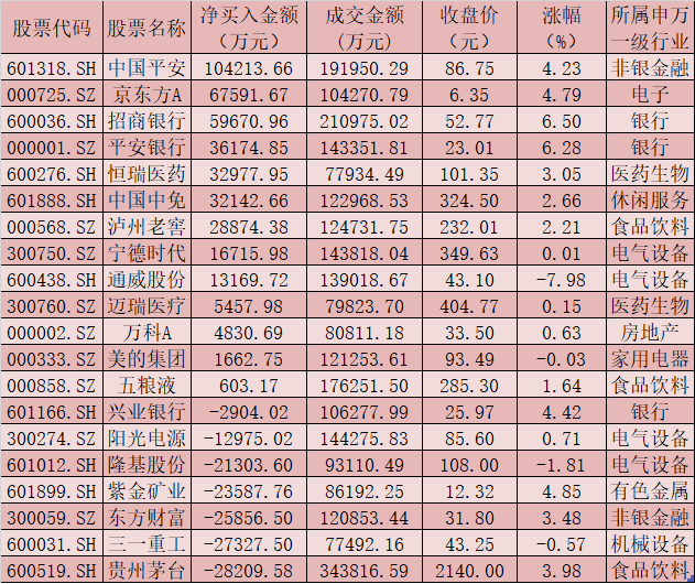 值得關(guān)注的是,周三,北向資金凈買入90.10億元,其中,滬股通凈買入金額為64.19億元,深股通凈買入金額為25.91億元。