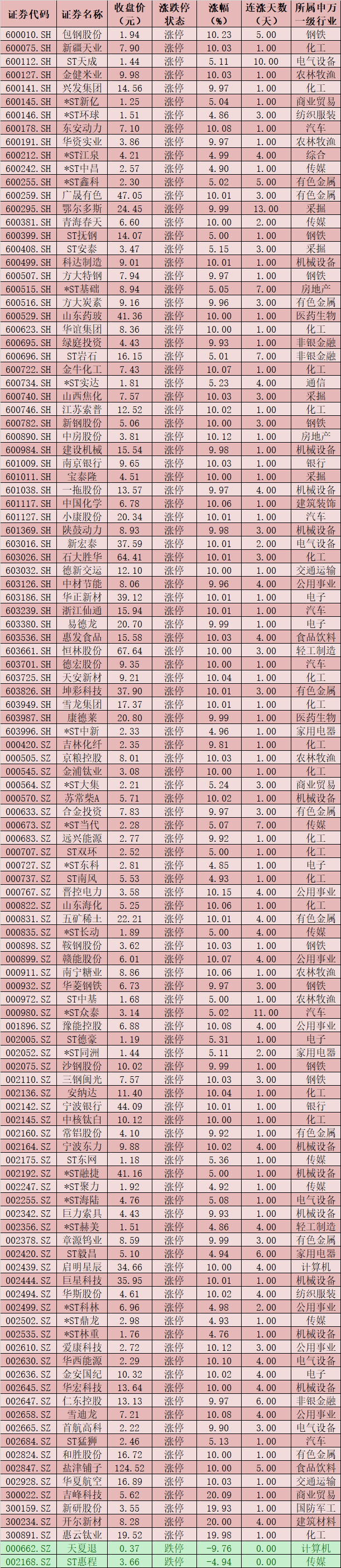 板塊方面,周三,申萬一級28個(gè)行業(yè)中,有26個(gè)行業(yè)實(shí)現(xiàn)上漲,鋼鐵行業(yè)領(lǐng)漲,漲幅超過7%,銀行、有色金屬等行業(yè)緊隨其后,漲幅均在3%以上。此外,家用電器和電氣設(shè)備等行業(yè)指數(shù)則分別微跌。