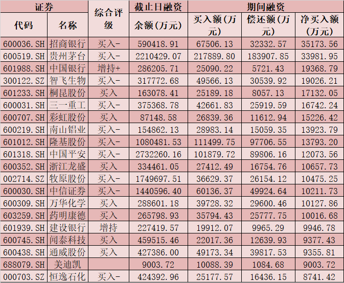 七、3月2日融資凈買入股TOP20