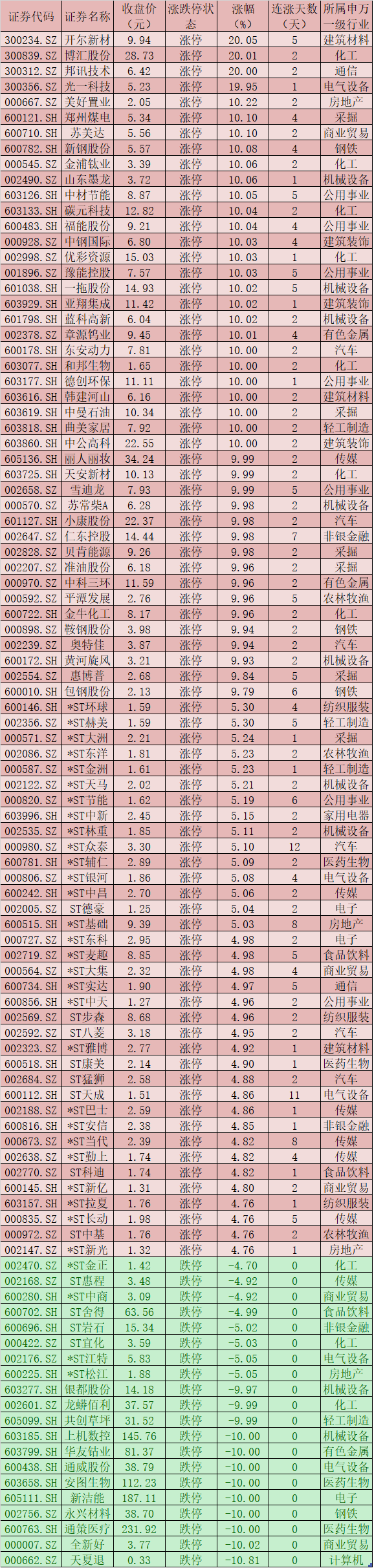 三、周四(3月4日)漲跌停股