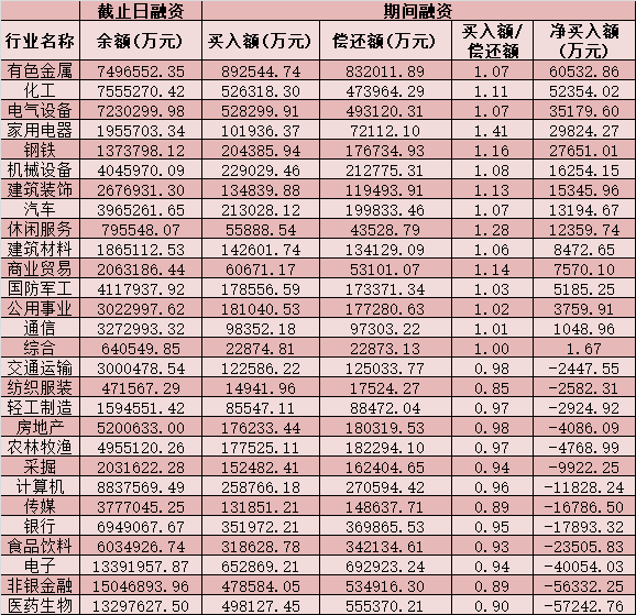 六、截至3月3日申萬級(jí)一級(jí)行業(yè)兩融交易情況