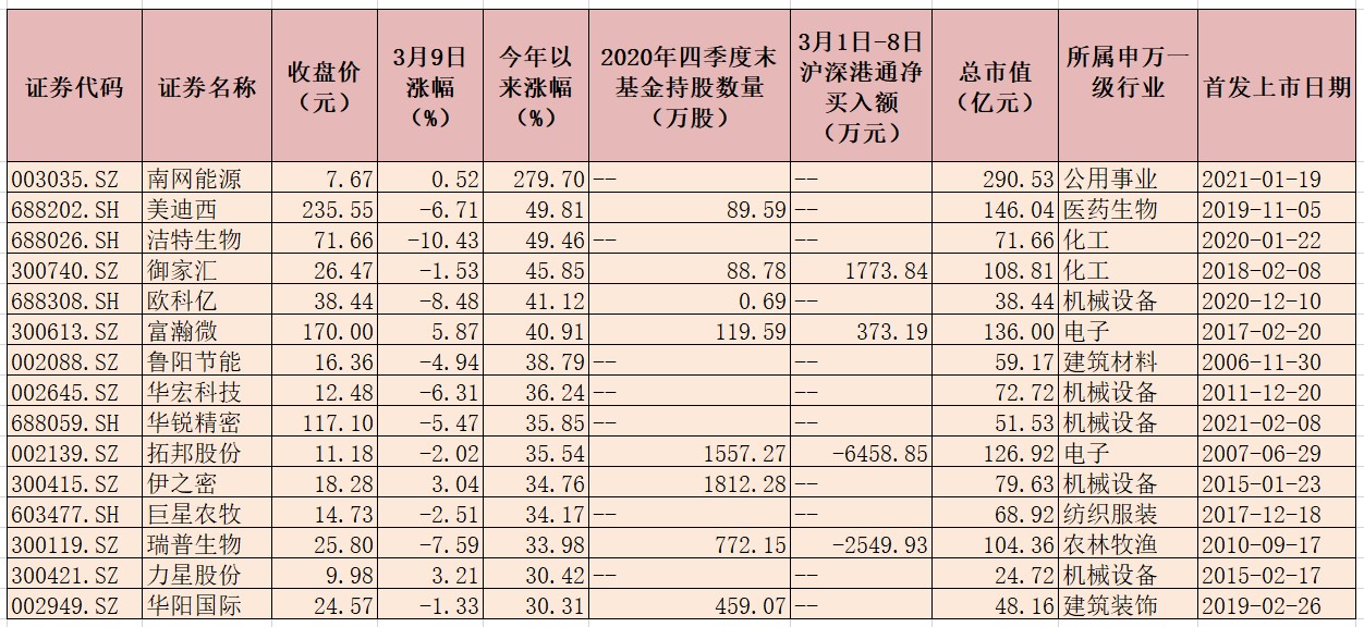 制表:今年以來漲幅超30%績優(yōu)股一覽