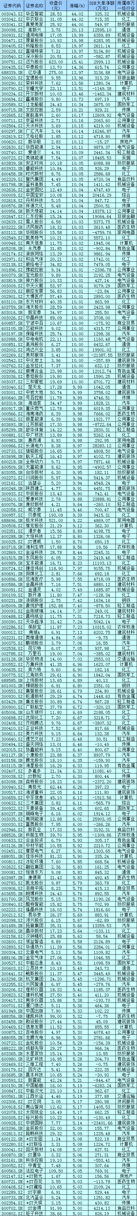 表:4月6日漲幅在5%及以上的個(gè)股一覽