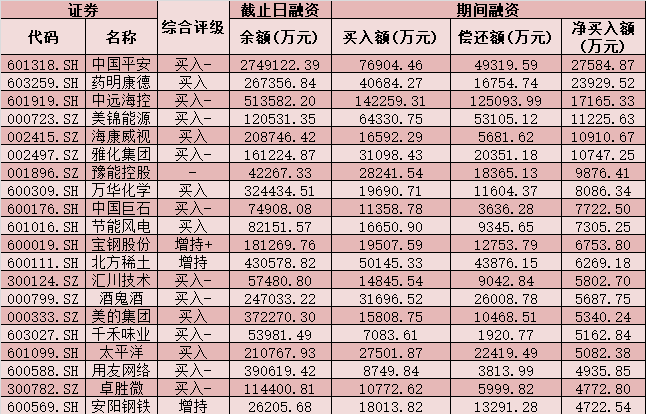 七、4月9日融資凈買入股TOP20