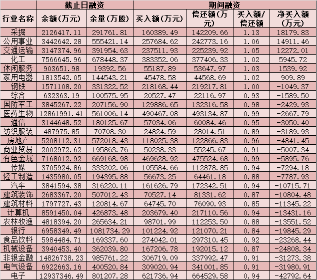 六、截至4月9日申萬級(jí)一級(jí)行業(yè)兩融交易情況