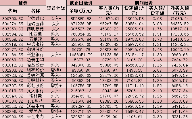 七、4月14日融資凈買入股TOP20