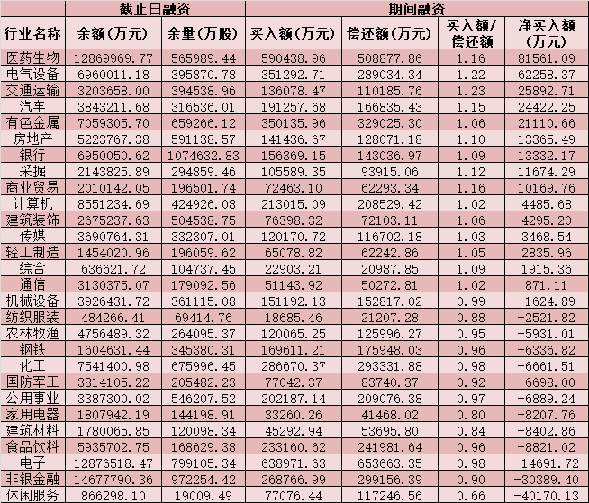 六、截至4月14日申萬級(jí)一級(jí)行業(yè)兩融交易情況
