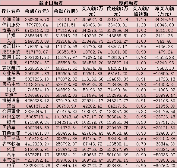 六、截至6月16日申萬一級(jí)行業(yè)兩融交易情況