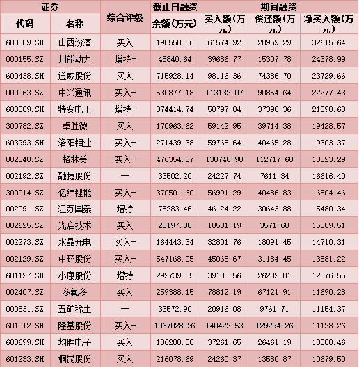 七、7月13日融資凈買入股TOP20