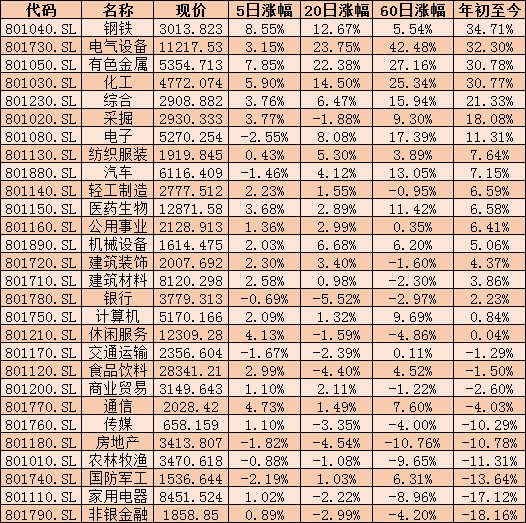 表:28個申萬一級行業(yè)市場情況: