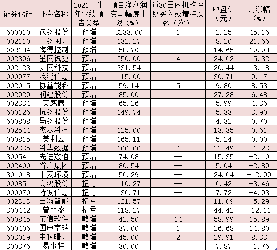 近期,機(jī)構(gòu)對(duì)部分半年報(bào)業(yè)績(jī)預(yù)喜的個(gè)股關(guān)注逐步升溫。統(tǒng)計(jì)顯示,近30日內(nèi)共有10只業(yè)績(jī)預(yù)喜股獲機(jī)構(gòu)給予“買入”或“增持”等看好評(píng)級(jí),寶信軟件近期機(jī)構(gòu)看好評(píng)級(jí)次數(shù)居首,達(dá)到14次,協(xié)鑫能科、星網(wǎng)銳捷、科華數(shù)據(jù)、中科曙光等4只概念股期間均受到2次及以上機(jī)構(gòu)扎堆推薦。