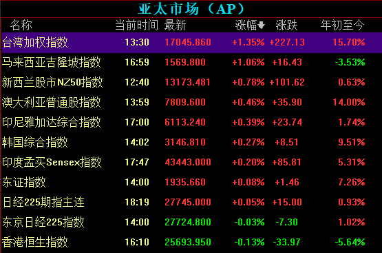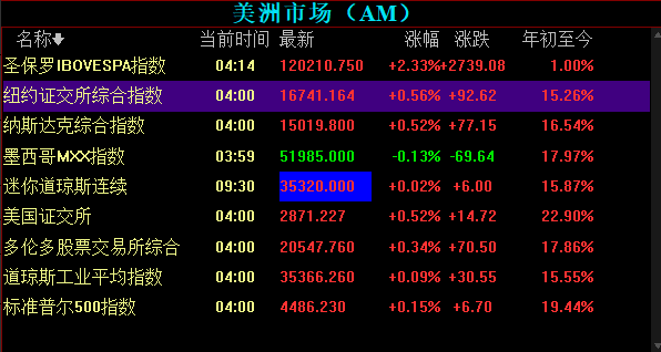 隔夜美洲股市普漲,僅墨西哥MMX指數(shù)微跌0.13%。在基建計(jì)劃利好消息的刺激下,周二美股三大股指齊收漲,納指與標(biāo)普500指數(shù)創(chuàng)歷史新高。納指史上首次站上15000點(diǎn)關(guān)口。中概股普遍上揚(yáng)。