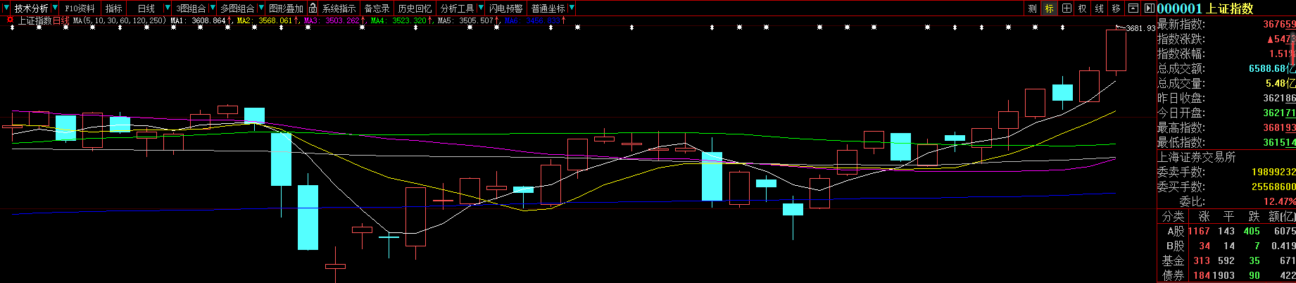 3681.93點(diǎn)!大藍(lán)籌集體發(fā)力,拉動滬指漲幅持續(xù)擴(kuò)大,周二(9月7日)盤中創(chuàng)半年來新高。