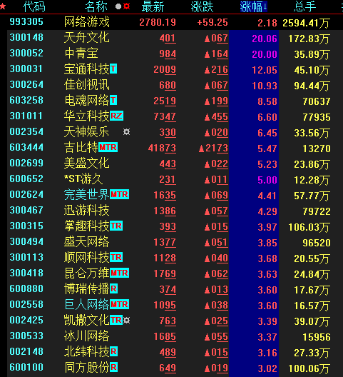 在此消息刺激下,游戲板塊也紛紛“回血”,天舟文化、中青寶等個股漲停,完美世界漲超4%。