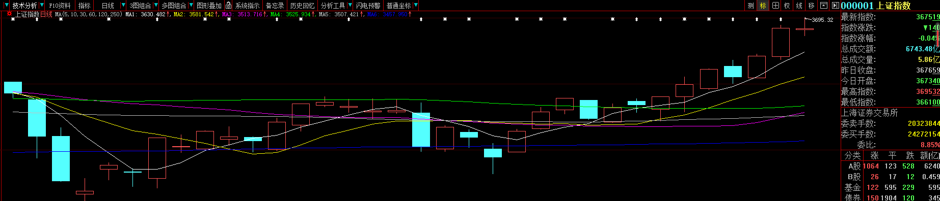 具體來看,上證指數(shù)跌0.04%,報(bào)3675.19點(diǎn);深證成指跌0.1%,報(bào)14688.08點(diǎn);創(chuàng)業(yè)板指跌0.97%,報(bào)3219.95點(diǎn);滬深兩市合計(jì)成交額14747.84億元,兩市成交額連續(xù)第36個(gè)交易日突破1萬億元。
