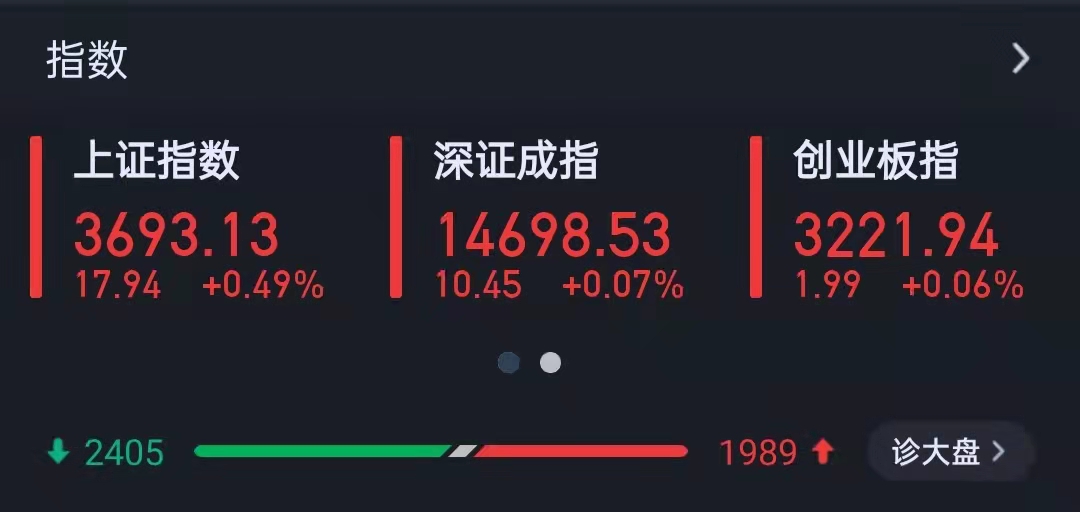 周四(9月9日),A股三大指數(shù)尾盤回暖,集體收漲,截至收盤,上證指數(shù)漲0.49%,報3693.13點;深證成指漲0.07%,報14698.53點;創(chuàng)業(yè)板指漲0.06%,報3221.94點;滬深兩市合計成交額14321.55億元,連續(xù)第37個交易日突破1萬億元。