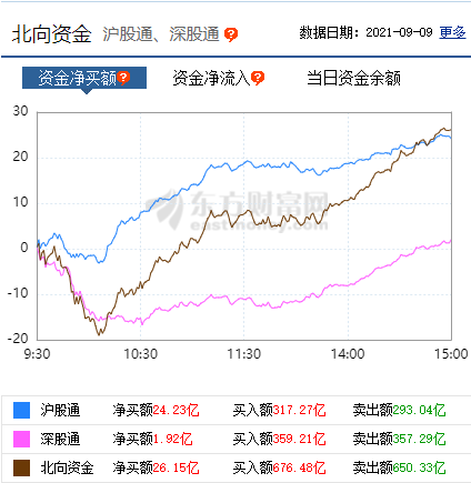 與此同時,北向資金凈買入26.15億元,其中,滬股通凈買入額24.23億元,深股通凈買入額1.92億元。