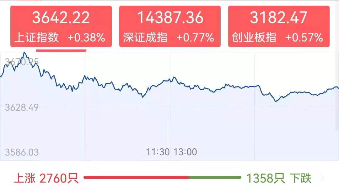 周四,中秋節(jié)后的第二個(gè)交易日,A股三大股指集體收漲。截至收盤,上證指數(shù)報(bào)3642.22點(diǎn),上漲0.38%。深證成指、創(chuàng)業(yè)板指分別上漲0.77%和0.57%。兩市合計(jì)成交金額達(dá)13214.8億元,成交量較前一交易日有所放大,兩市成交額連續(xù)第45個(gè)交易日突破1萬億元,繼續(xù)刷新最長歷史紀(jì)錄。北向資金凈流出43.09億元。