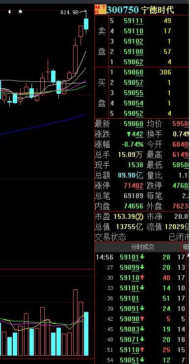作為A股儲能板塊的龍頭,寧德時代早盤也一度高開,股價歷史首次突破600元大關(guān)。截至收盤報590.6元/股。
