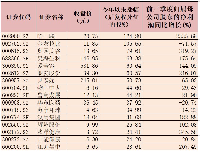 表:今年以來漲幅超23%的醫(yī)美概念股一覽