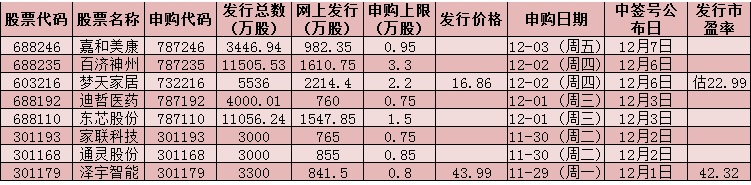 表:下周(11月29日-12月3日)8只新股申購情況: