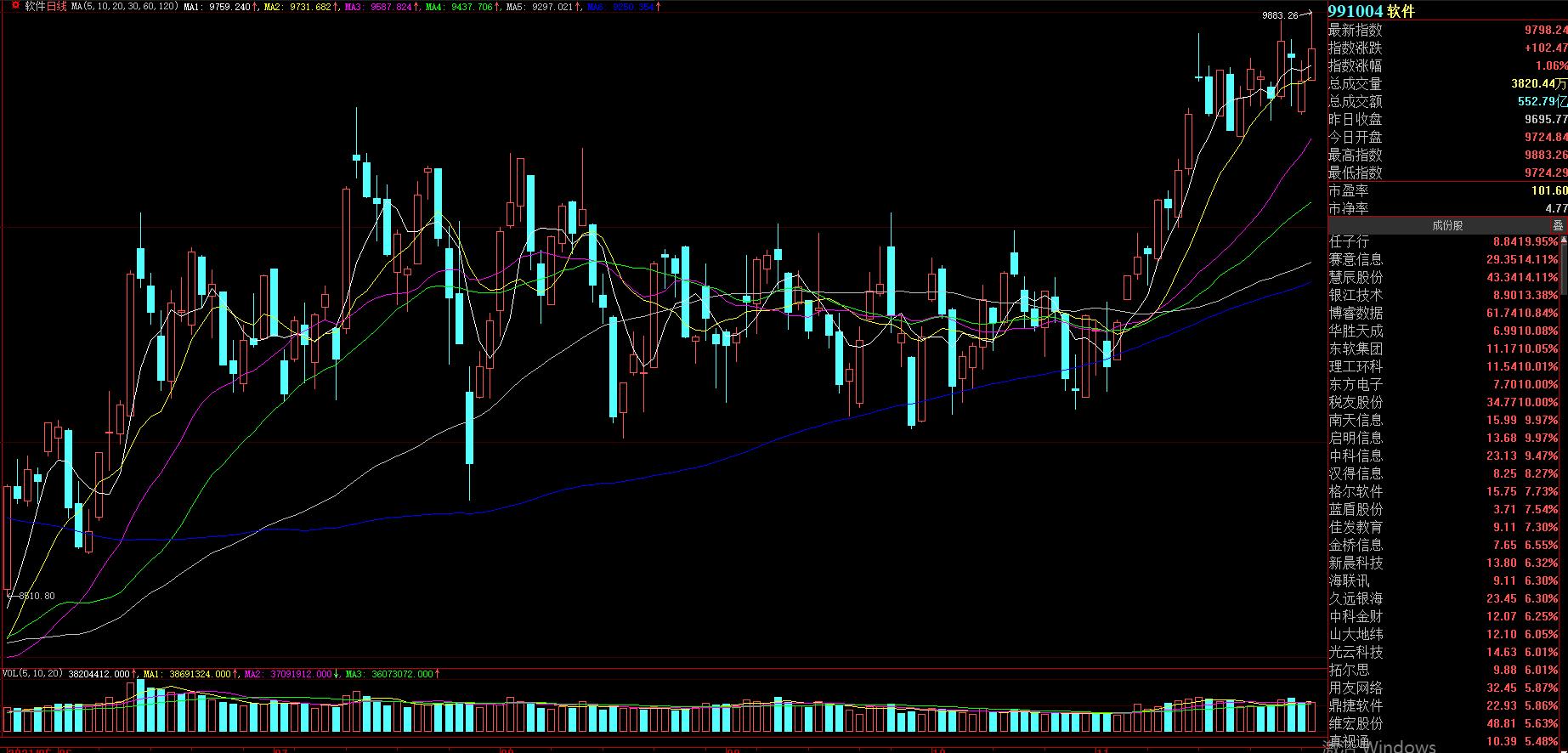 與此同時,周二,軟件服務(wù)板塊放量高開高走單邊上揚,板塊指數(shù)漲逾1%,創(chuàng)近4個月來新高。其中,任子行20CM漲停,華勝天成、東軟集團、理工環(huán)科、東方電子、啟明信息等5只概念股也紛紛封板。