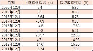 回顧過去10年(2011年至2020年的12月份A股行情表現(xiàn),上證指數(shù)共有6次上漲,深證成指有7只上漲。因此,12月份A股上漲概率較高。