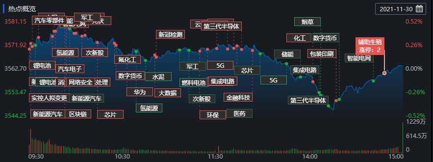 11月30日,A股三大指數(shù)走勢分化,上證指數(shù)維持紅盤震蕩,創(chuàng)業(yè)板指高開低走。截至收盤,上證指數(shù)漲0.03%,報3563.89點,深證成指跌0.1%,報14795.73點,創(chuàng)業(yè)板指跌0.22%,報3495.59點;兩市合計成交12218.7億元,連續(xù)第28個交易日突破萬億元。個股方面,在可交易的A股中,上漲個股有2752只,下跌個股有1482只,平盤個股134只。此外,回顧本月三大指數(shù)的走勢,上證指數(shù)期間累計漲0.47%,深證成指期間累計漲2.38%,創(chuàng)業(yè)板指期間累計漲4.33%。