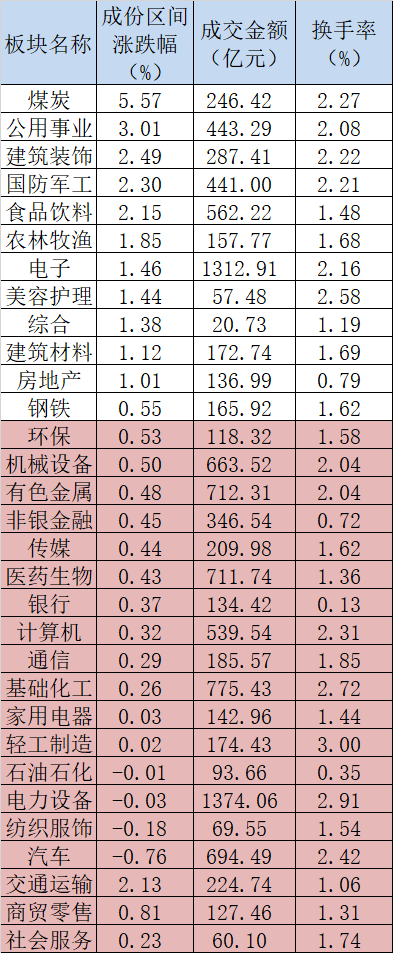 申萬一級(jí)行業(yè)方面,24個(gè)行業(yè)實(shí)現(xiàn)上漲,煤炭、公用事業(yè)、建筑裝飾等行業(yè)漲幅居前,分別上漲5.57%、3.01%以及2.49%。汽車、紡織服飾、電力設(shè)備、石油石化等行業(yè)則呈現(xiàn)不同程度回調(diào)。